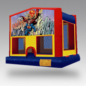The Justice League - Super Heroes challenge brings out thesuper heroes in the kids. Kids can battle their way through obstacles and go down the slide.