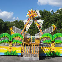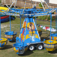 Small child-sized boat rotates in a upward and downward motion. This ride is appropriate for children 6 and under. The total capacity for the ride is 12 children per ride rotation. Space required to set-up mechanical ride is 30' x 30' diameter.