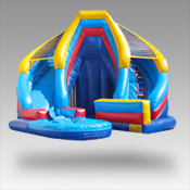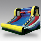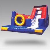 The BMX (65x15x22)- This awesome looking inflatable offers 65 feet of sliding fun! You start at the top of a 22 FT Slide that goes right into a slip n slide. Looks great!