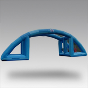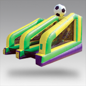 The Soccer shootout inflatable game puts players in the competitive mode. Participants take their shot at the back wall to score points through the different openings. The soccer ball then returns to the opposing players lane, and the two kickers then try to get rid of all the balls in their lane first.