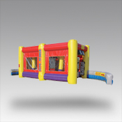 The 5-in-1 combo style bounce house is the ultimate ninja combo inflatable! This 3-in-1 bouncy house is sure to make any indoor or outdoor event a great success!