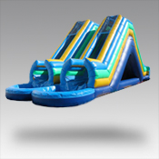 This slide is a great theme for a tropical or beach themed bash. Dual lane water slide with a pool of water on the bottom